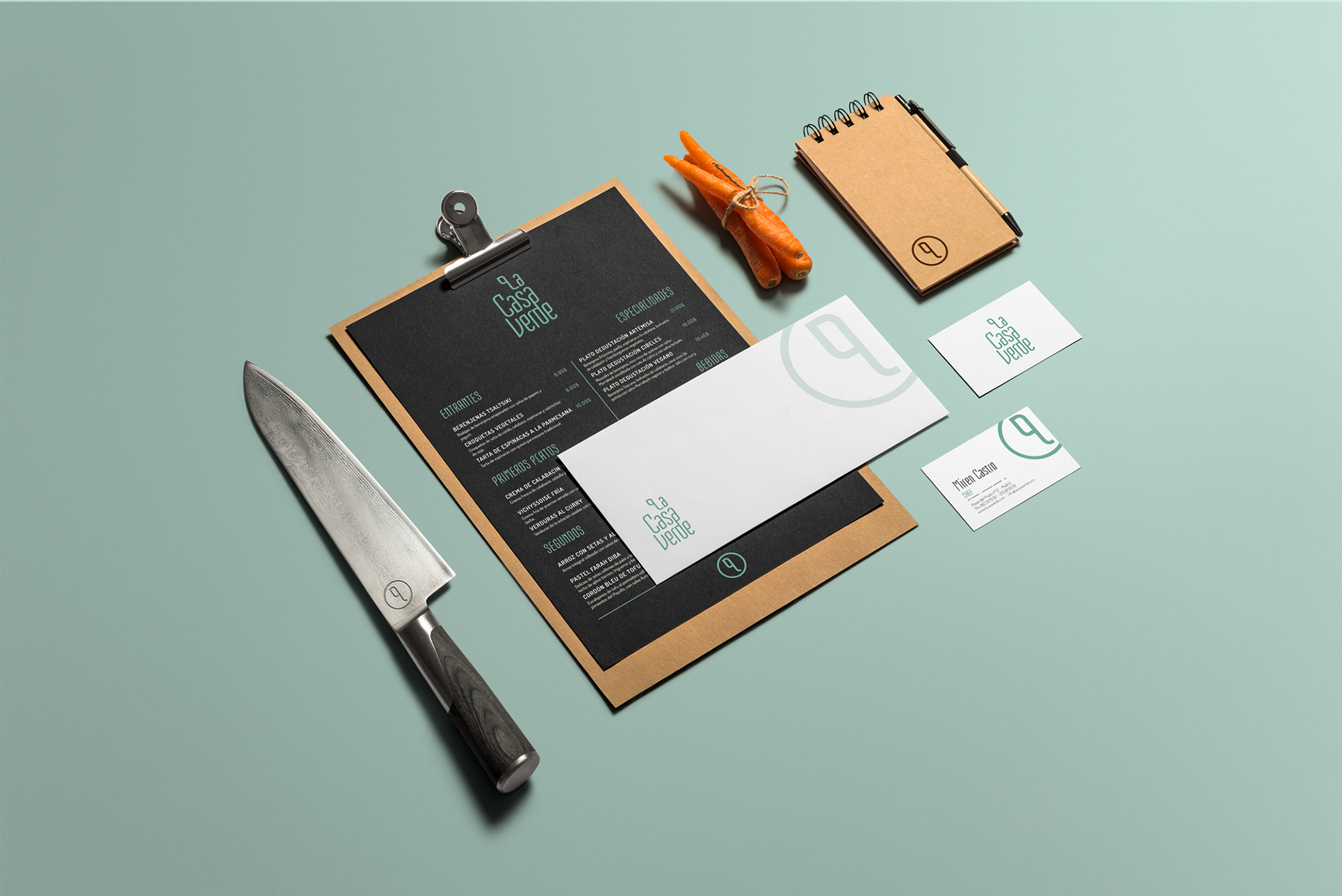Imagen corporativa creada para el restaurante vegetariano La Casa Verde. Se trata de un restaurante que ofrece un producto fresco de manera moderna, y busca diferenciarse de la amplia competencia con la que compite por hacerse un hueco en Madrid.